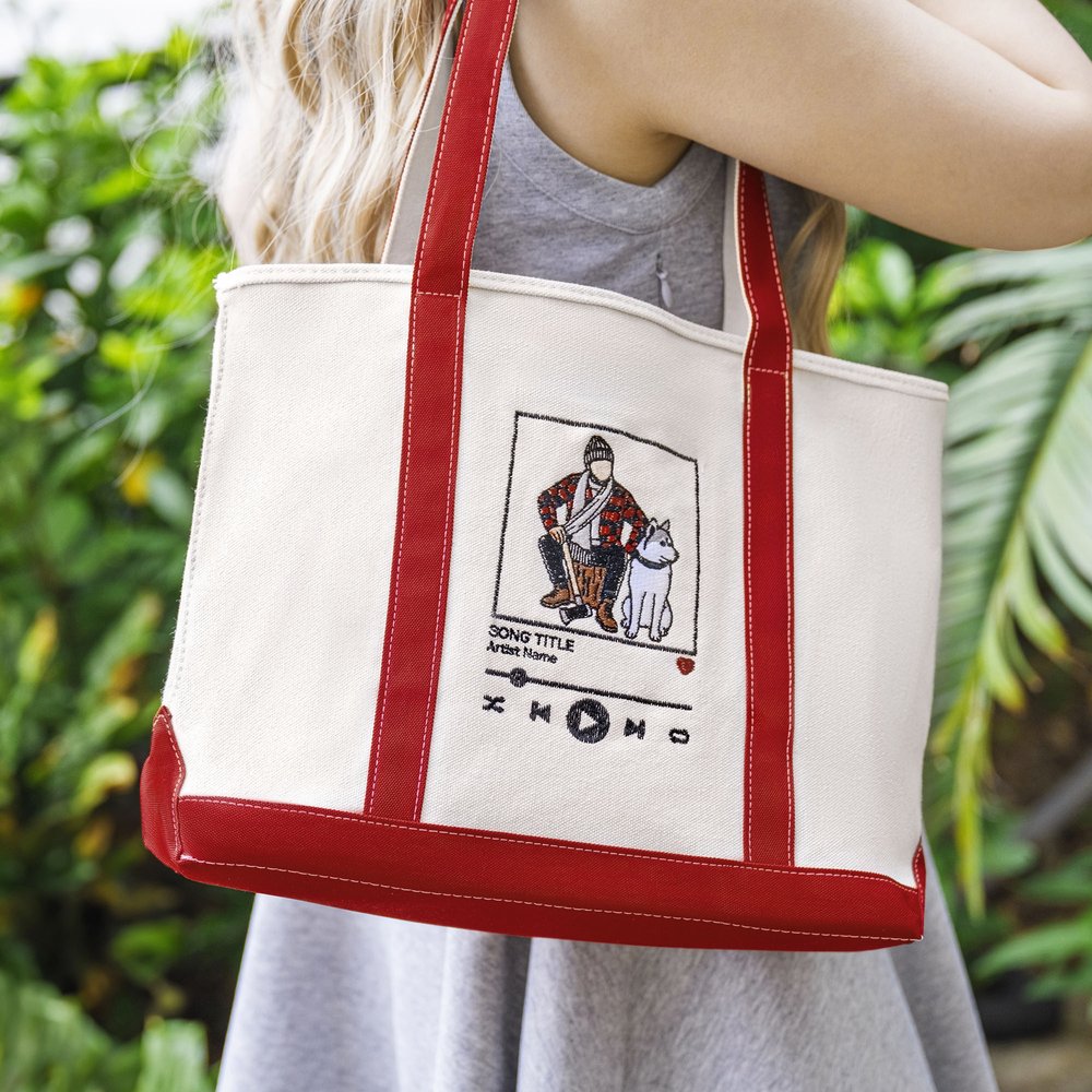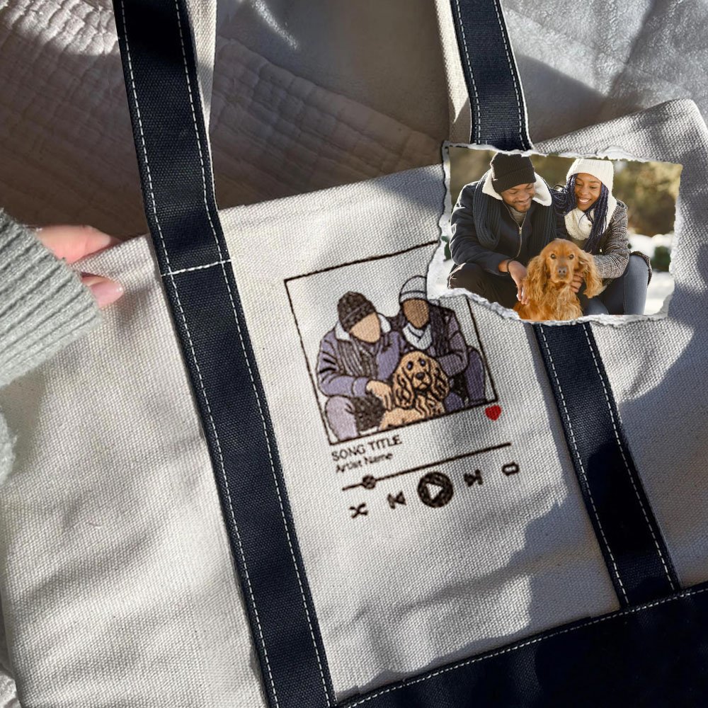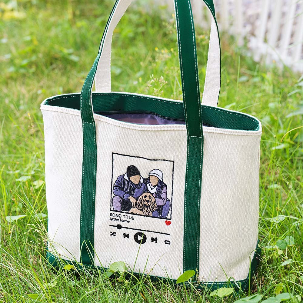 This tote bag features a creative music player design that can be Personalised with photos and displayed in the center of the tote bag through exquisite embroidery craftsmanship, adding a touch of warmth and fashion to your precious memories. You can add the singer's name and song title to create a unique music memory.