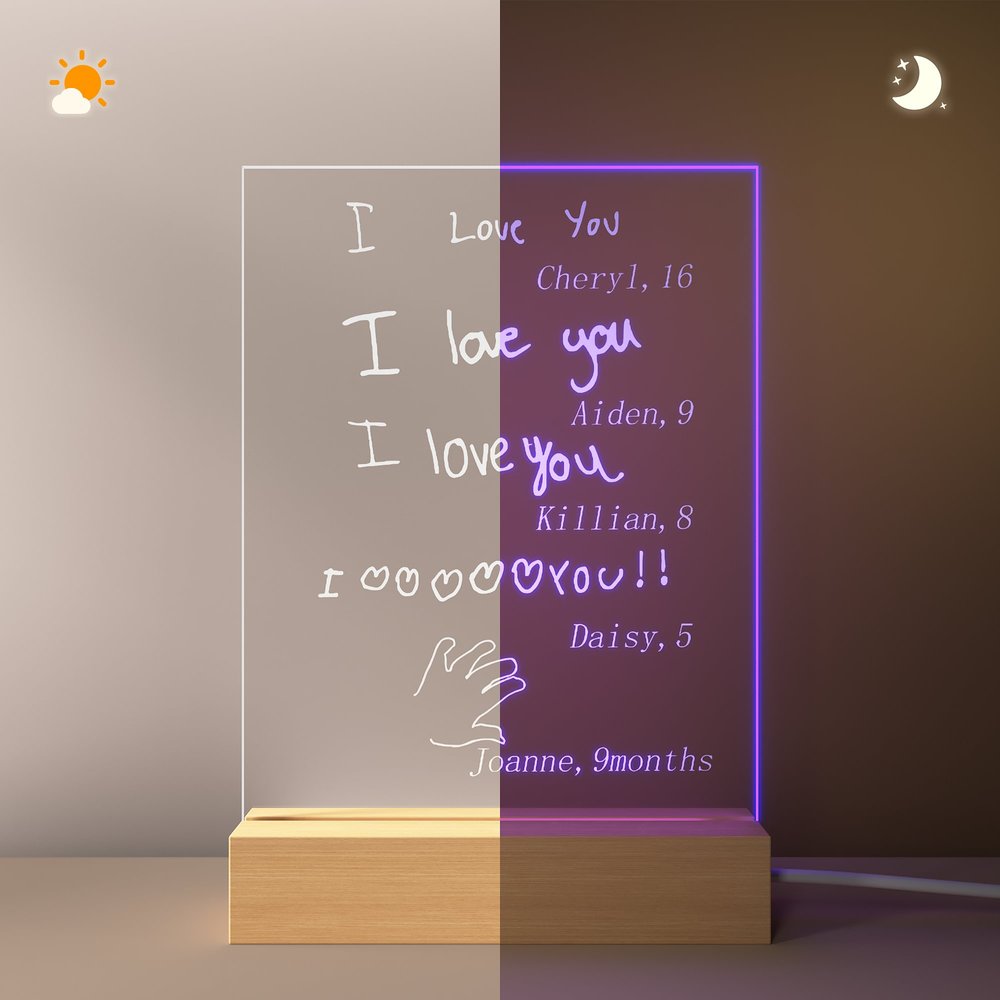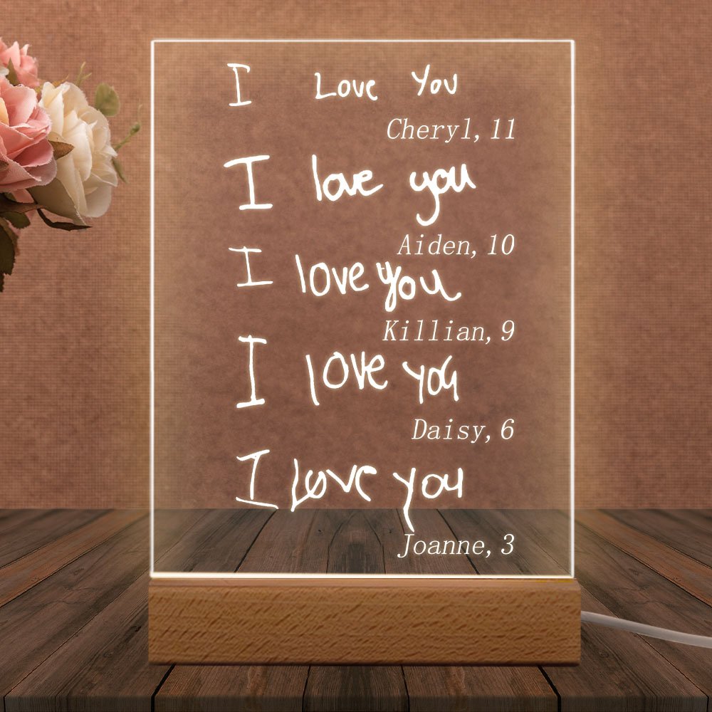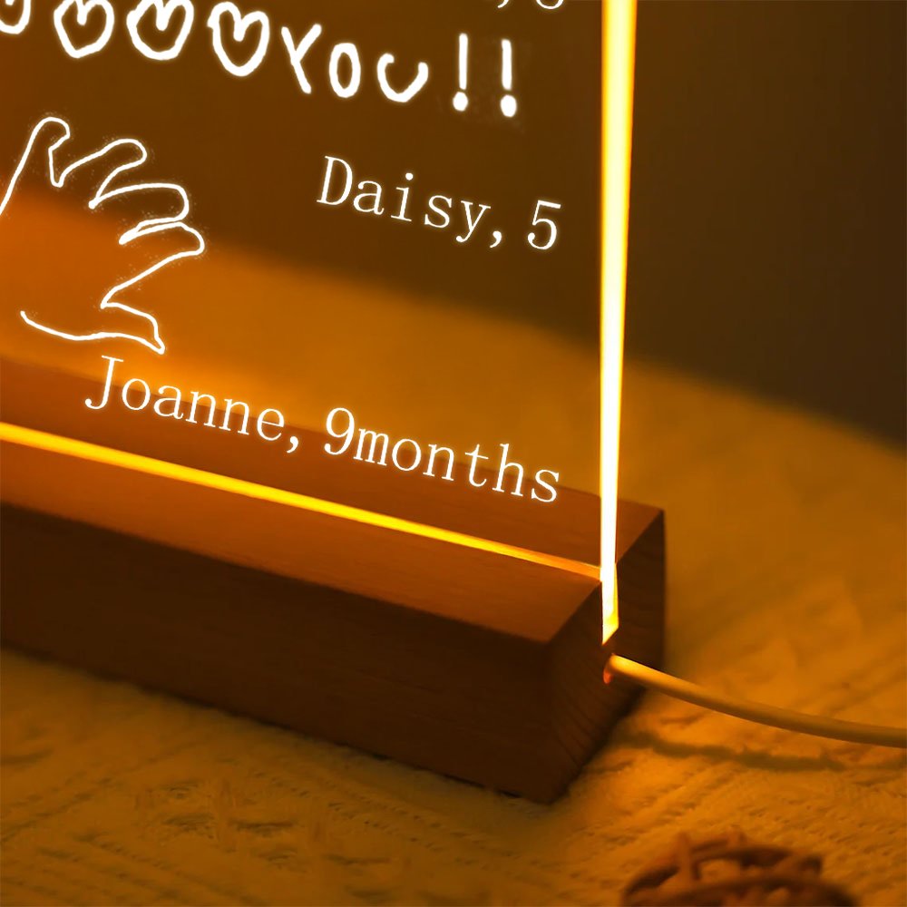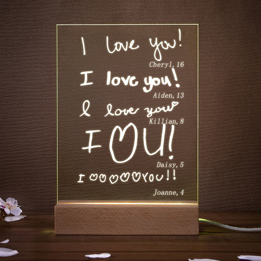 This night light uses a unique handwritten text or drawing design style to convey the love of children for you. You can upload photos of children's handwriting and add their names and ages to make this nightlight more loving and affectionate.