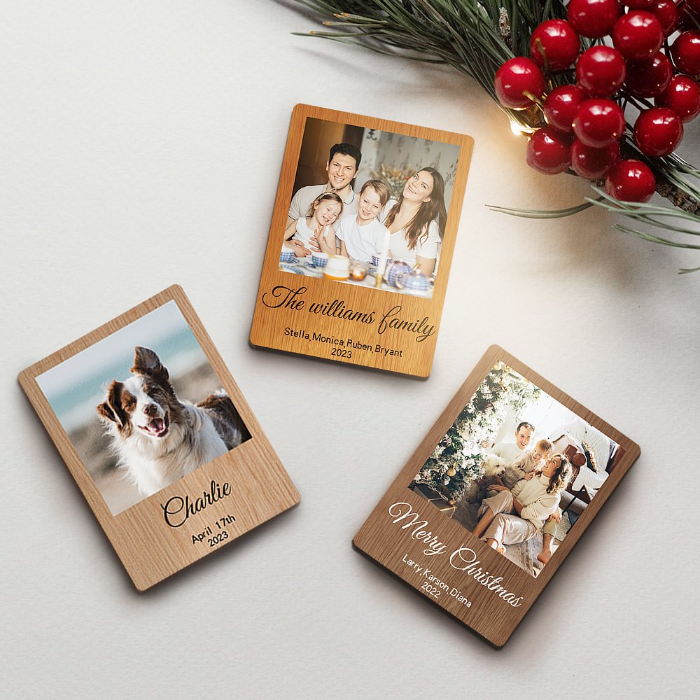Transform your favorite snapshots into stunning mementos with our charming wooden photo magnet ornament. Perfect for capturing your finest moments and making an excellent gift for family, couples, friends, colleagues, or even yourself.